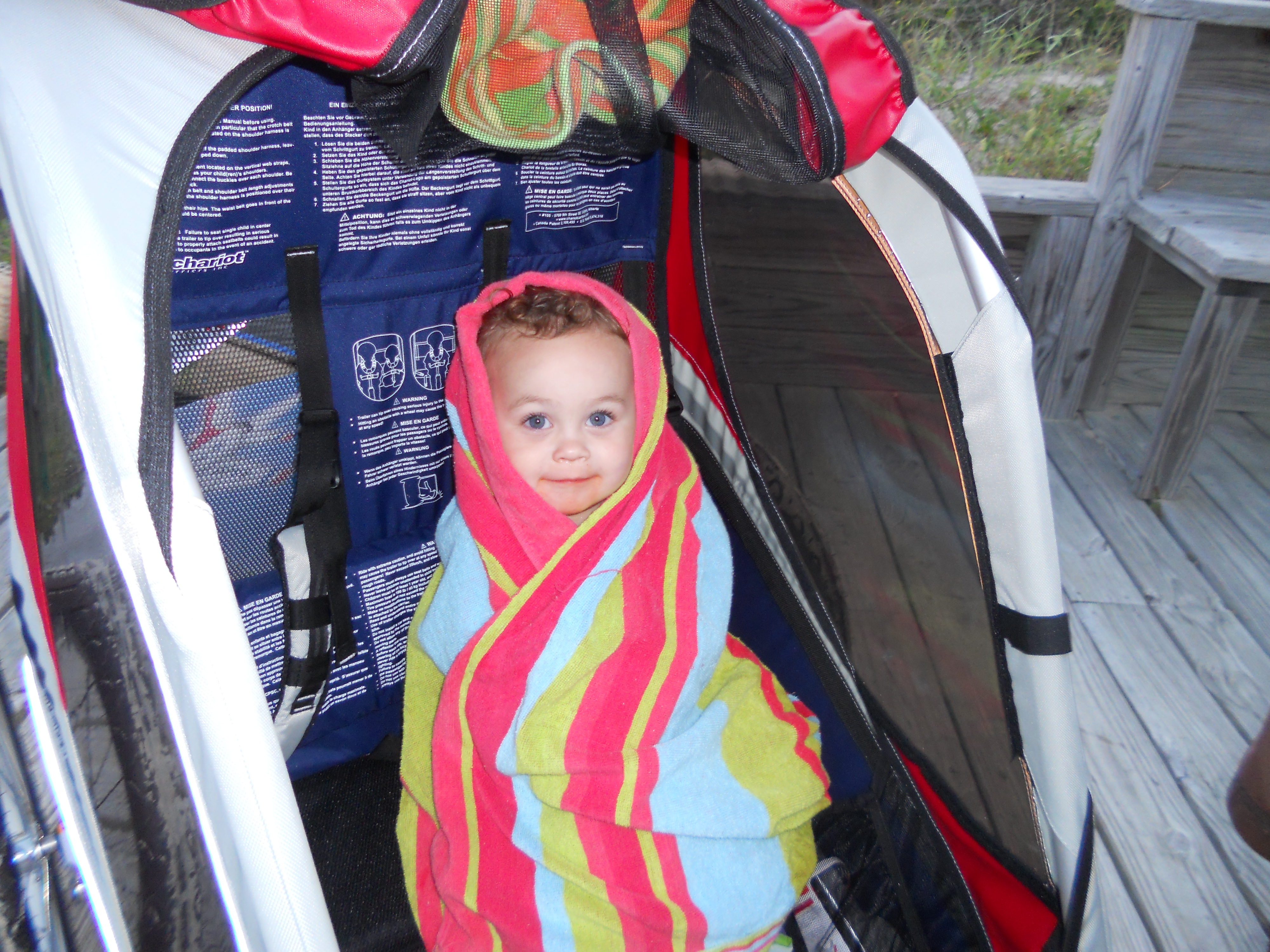 He loves the beach. Digging in the sand. Laying in the waves. Being pulled around the island in his ‘chariot’ behind Daddy’s bike. The paths are beautiful…winding through shade trees that appear to have been standing for hundreds of years, past green golf
